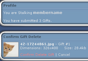 NOTE: It will remove the gift from the queue--if the gift was approved, it's there to stay). If you want to delete all of the gifts, click [Purge Gifts] in the upper right hand corner of your profile box. Be careful using this as it may or may not delete all the gifts on the site. ^^;;